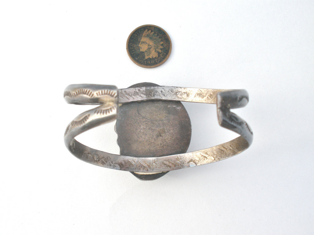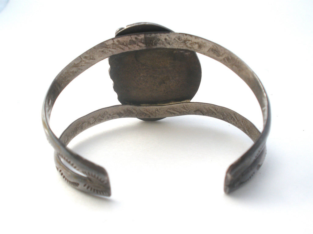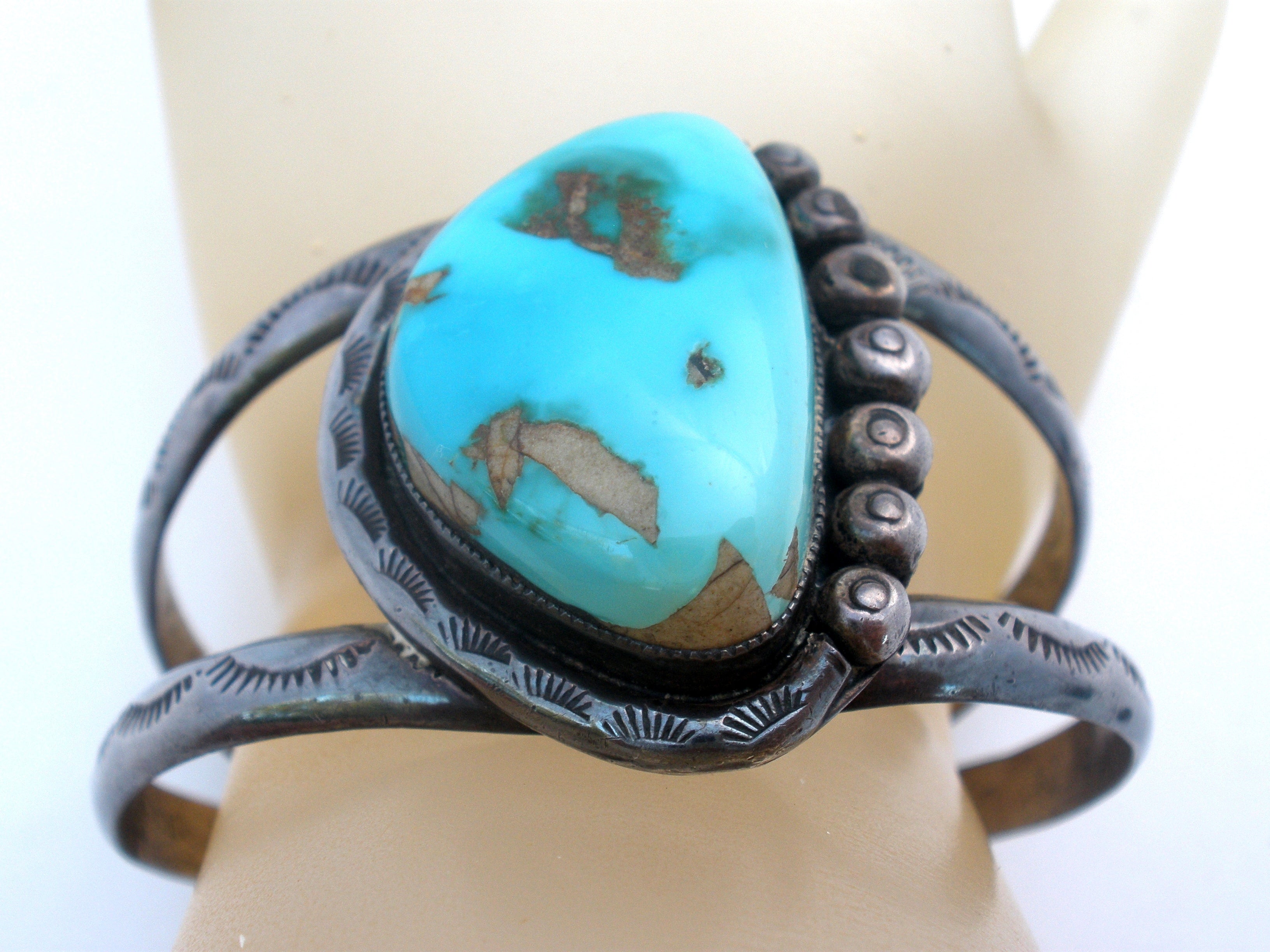 Native American Jewelry - This is a sterling silver vintage cuff bracelet with a large and beautiful blue turquoise gemstone with silver matrix.