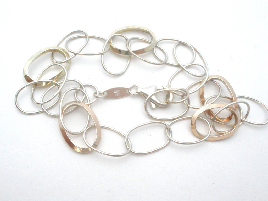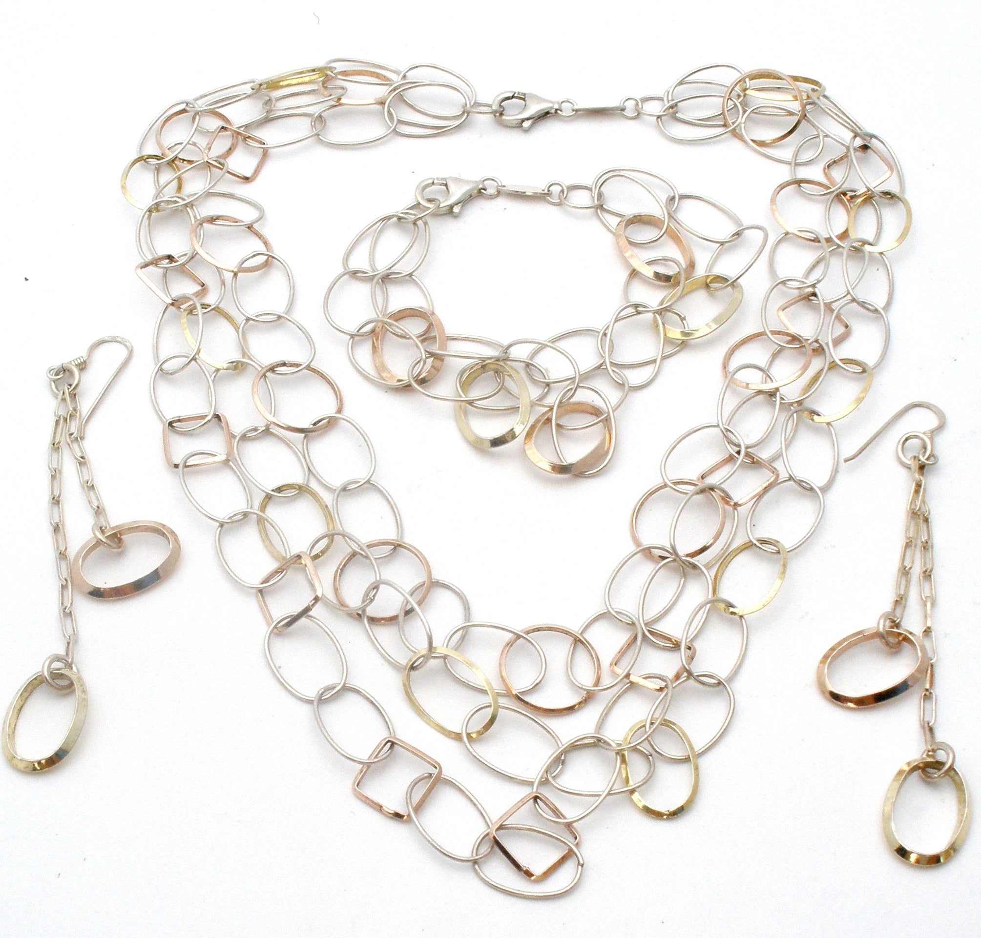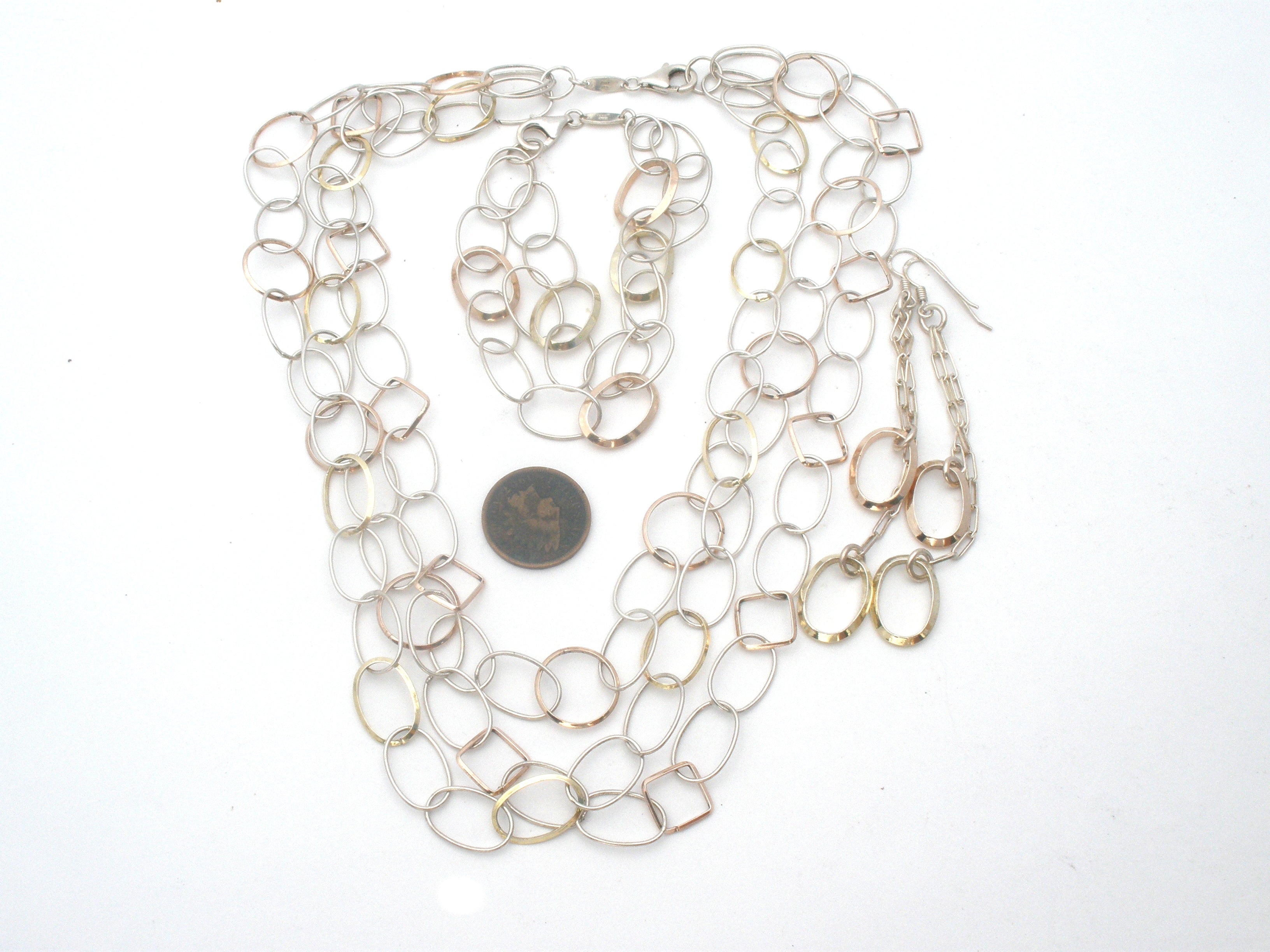 Vintage Jewelry - This is a two tone sterling silver and gold link necklace, bracelet and earrings.