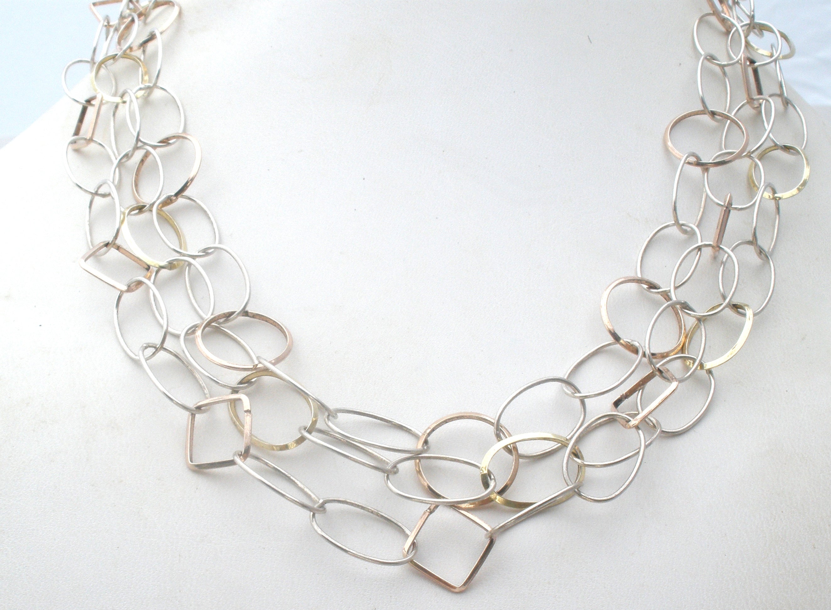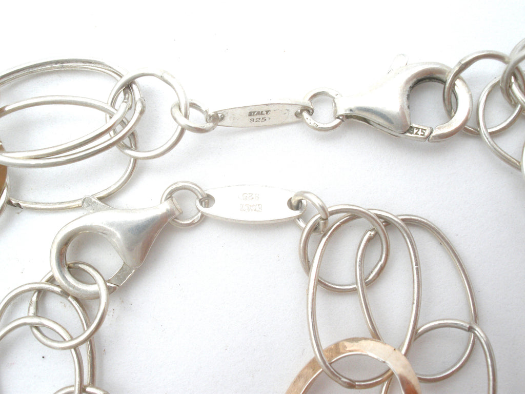 The necklace is triple strand 17" long, widest round links are slightly over .5". It is hallmarked Italy 925 twice.