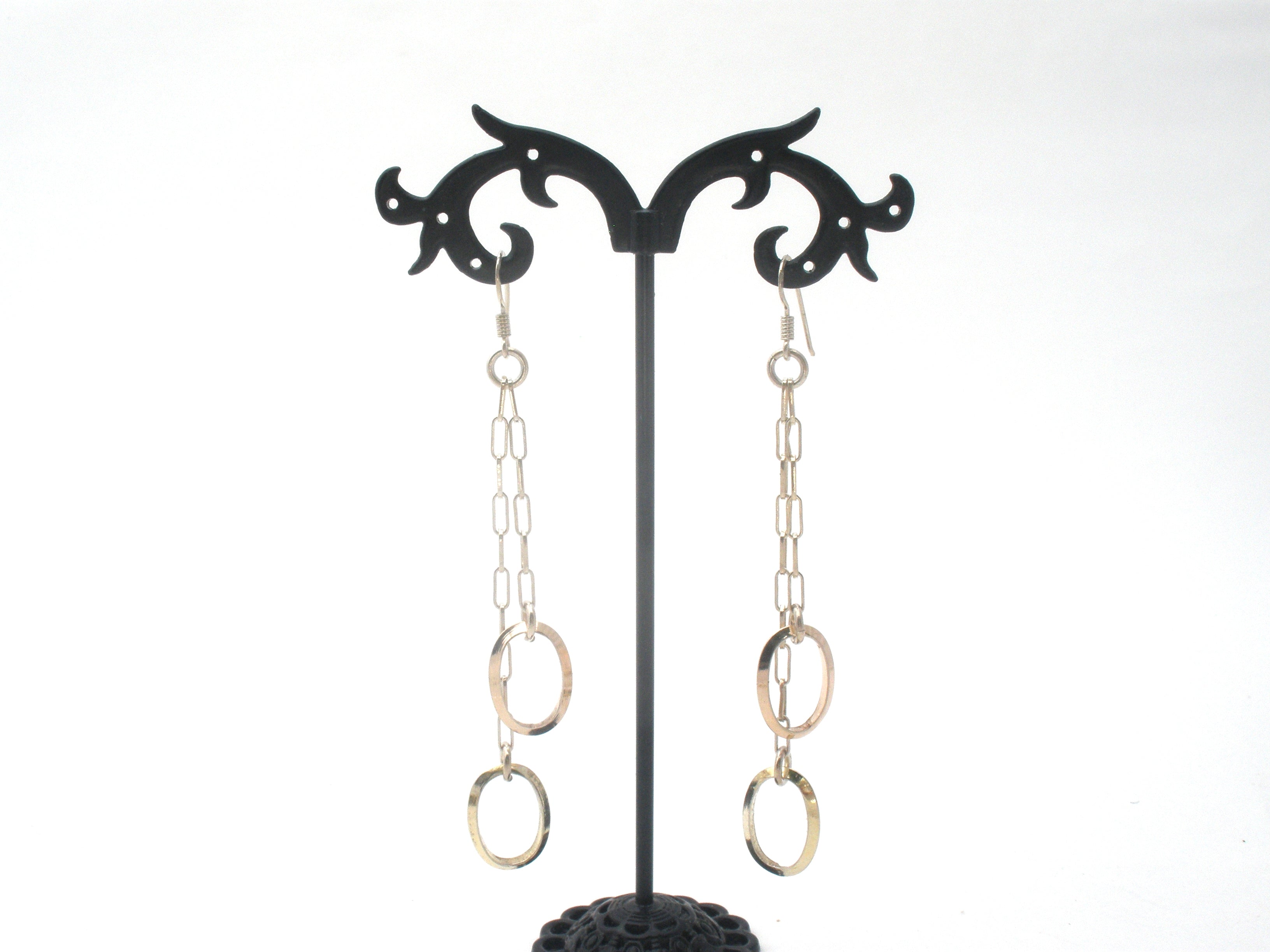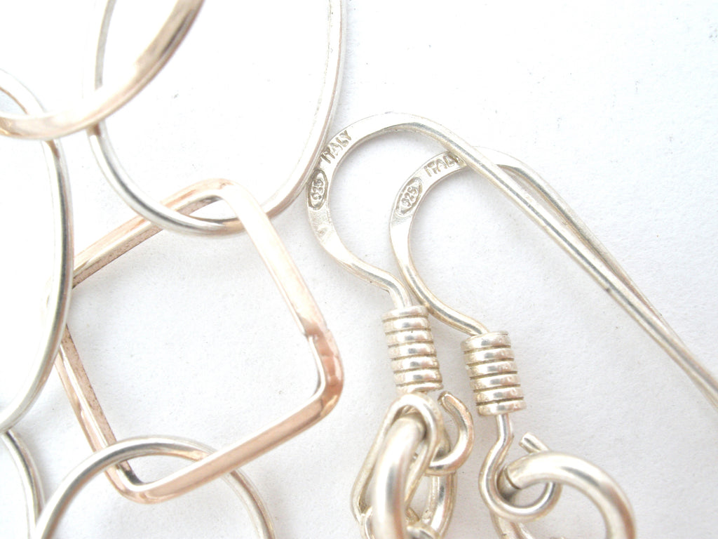 The pierced dangle earrings are 3.25 long, oval links are .5" wide, hallmarked Italy 925.