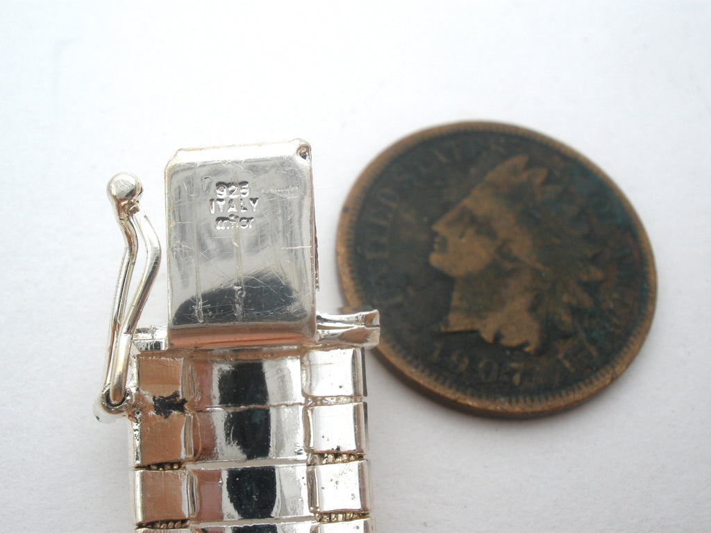 The bracelet is hallmarked 925 Italy and has slide in locking clasp with safety clip.
