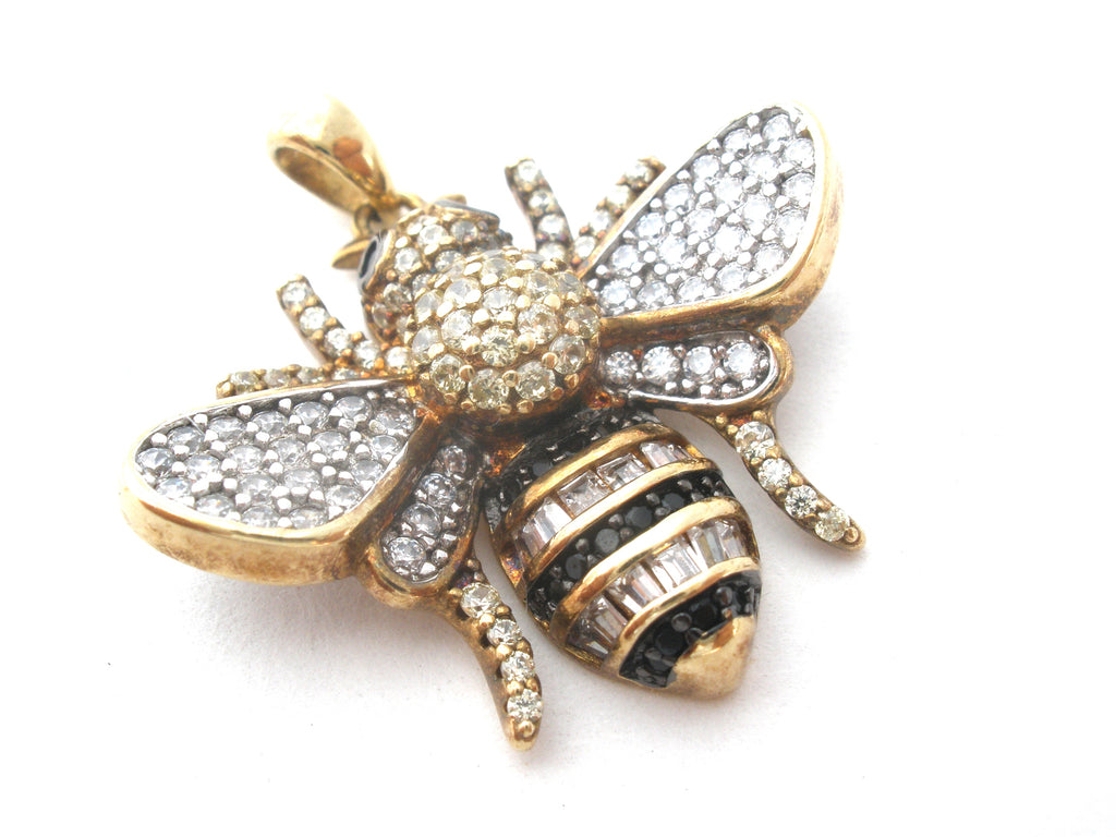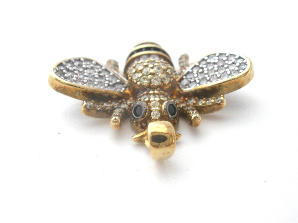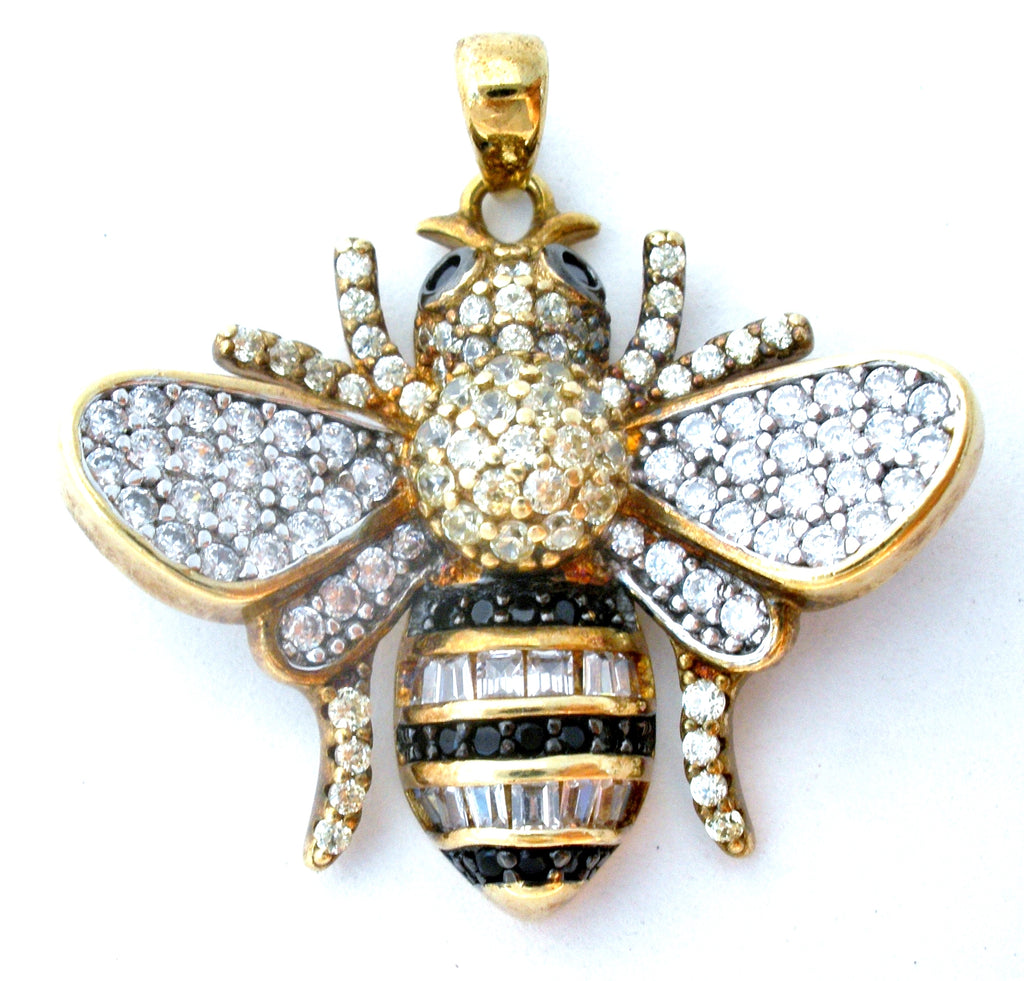 Figural Jewelry - This is a vermeil, gold over sterling silver been pendant with black and clear crystals.