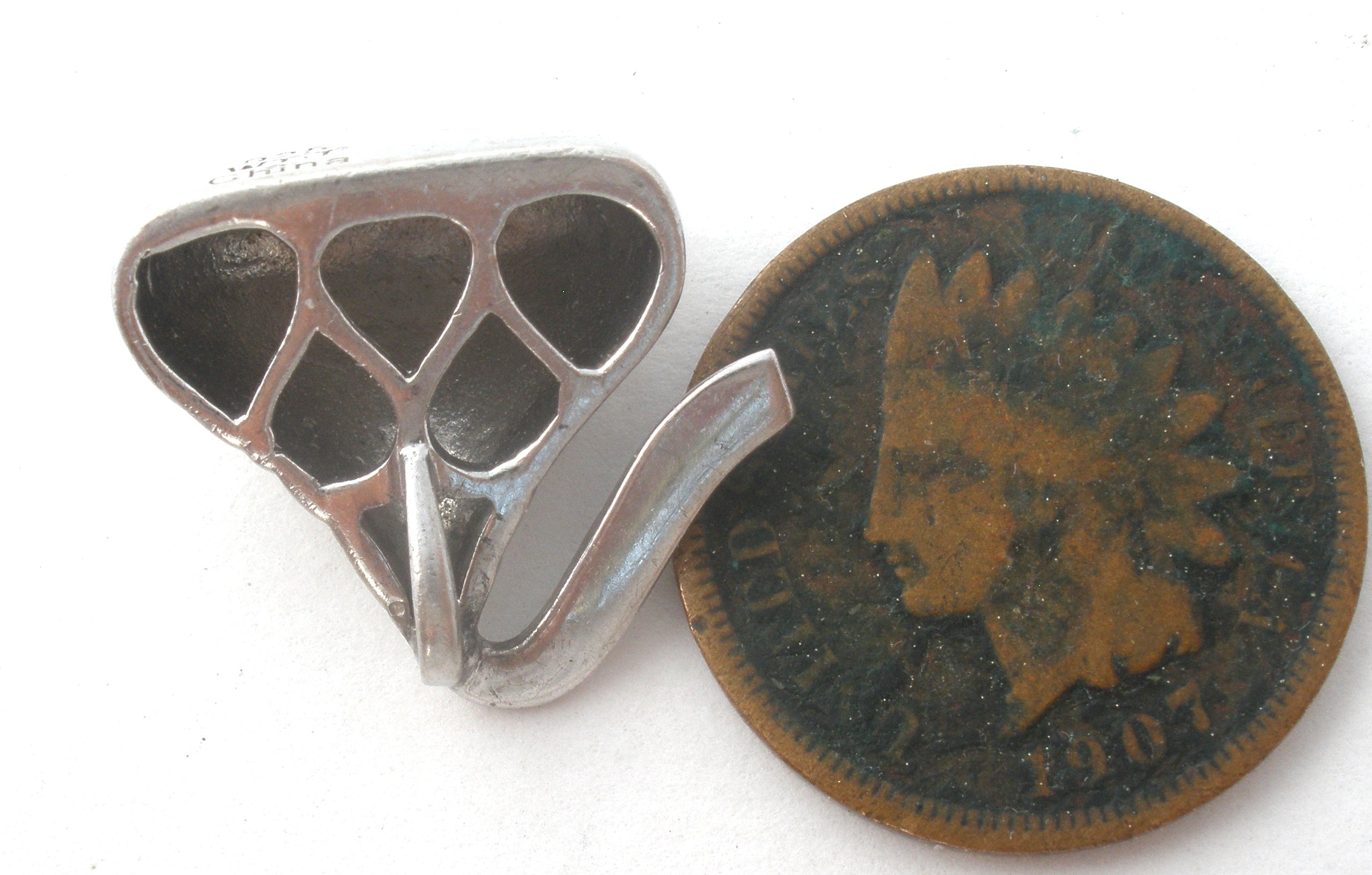 The pendant measures .63" (16mm) by slightly under .75" (18mm) and weighs 2.29 grams.