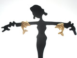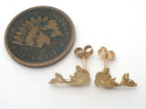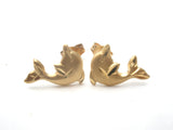 Vintage Jewelry - This is a pair of 14K yellow gold pierced dolphin earrings with diamond cut accents.