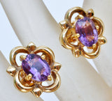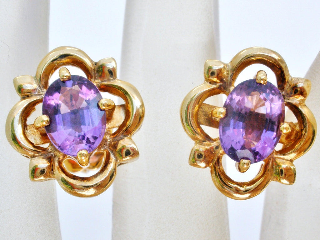 Gemstone Jewellery - This is a pair of 18K yellow gold pierced post earrings with amethyst gems.
