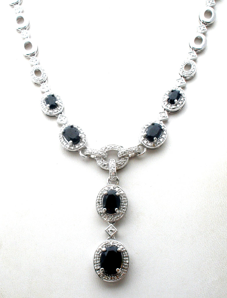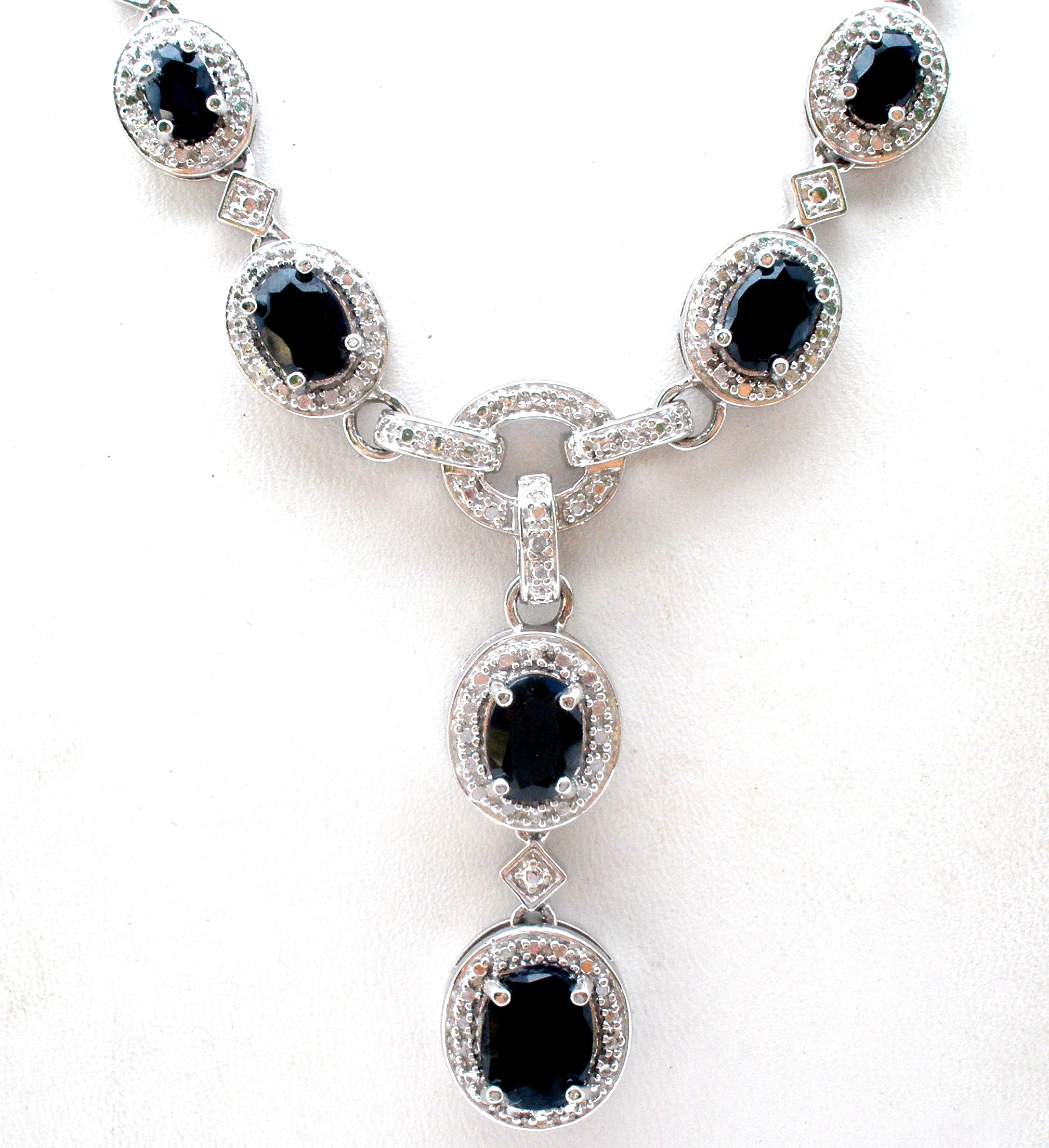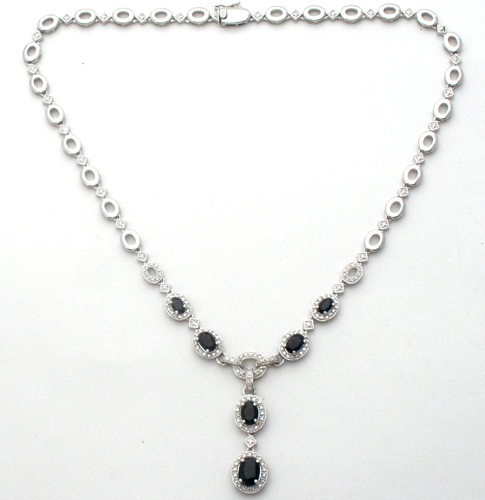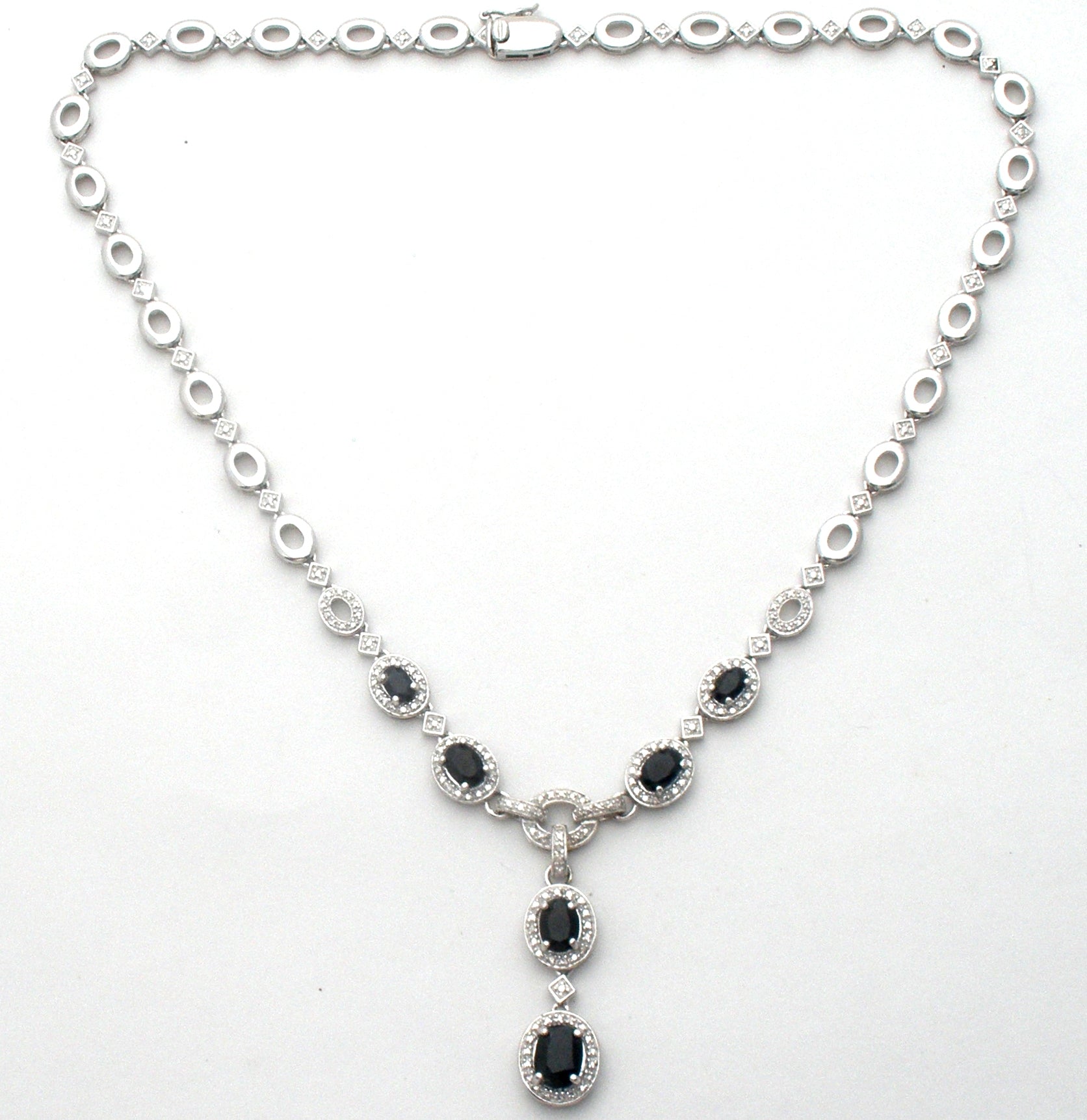 Designer Jewelry - This is a sterling silver lavalier style necklace with black onyx gemstones and one tiny diamond.