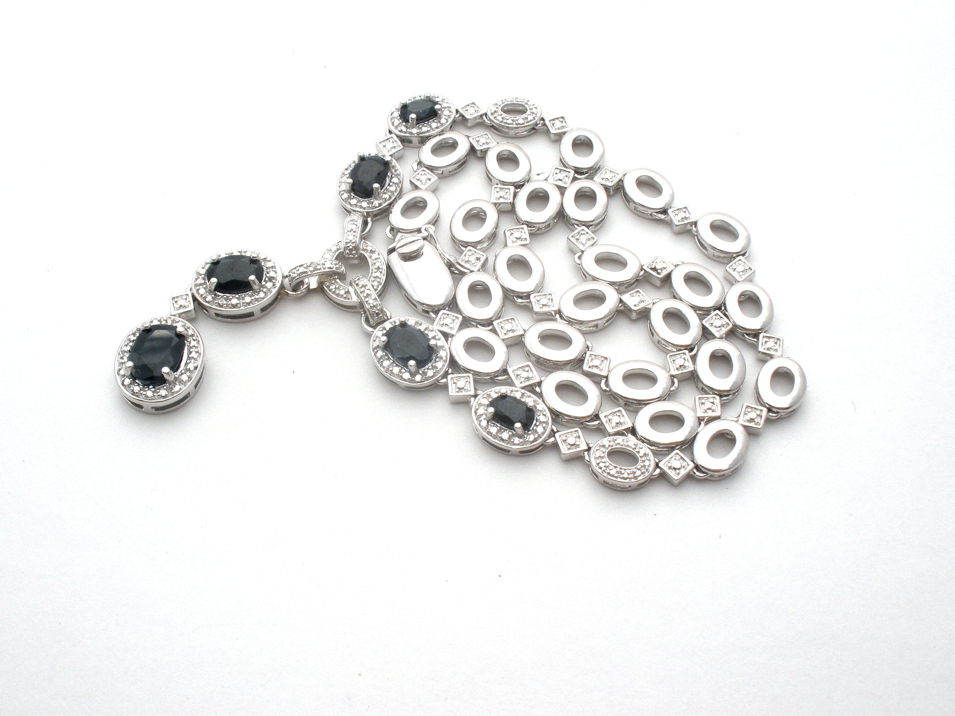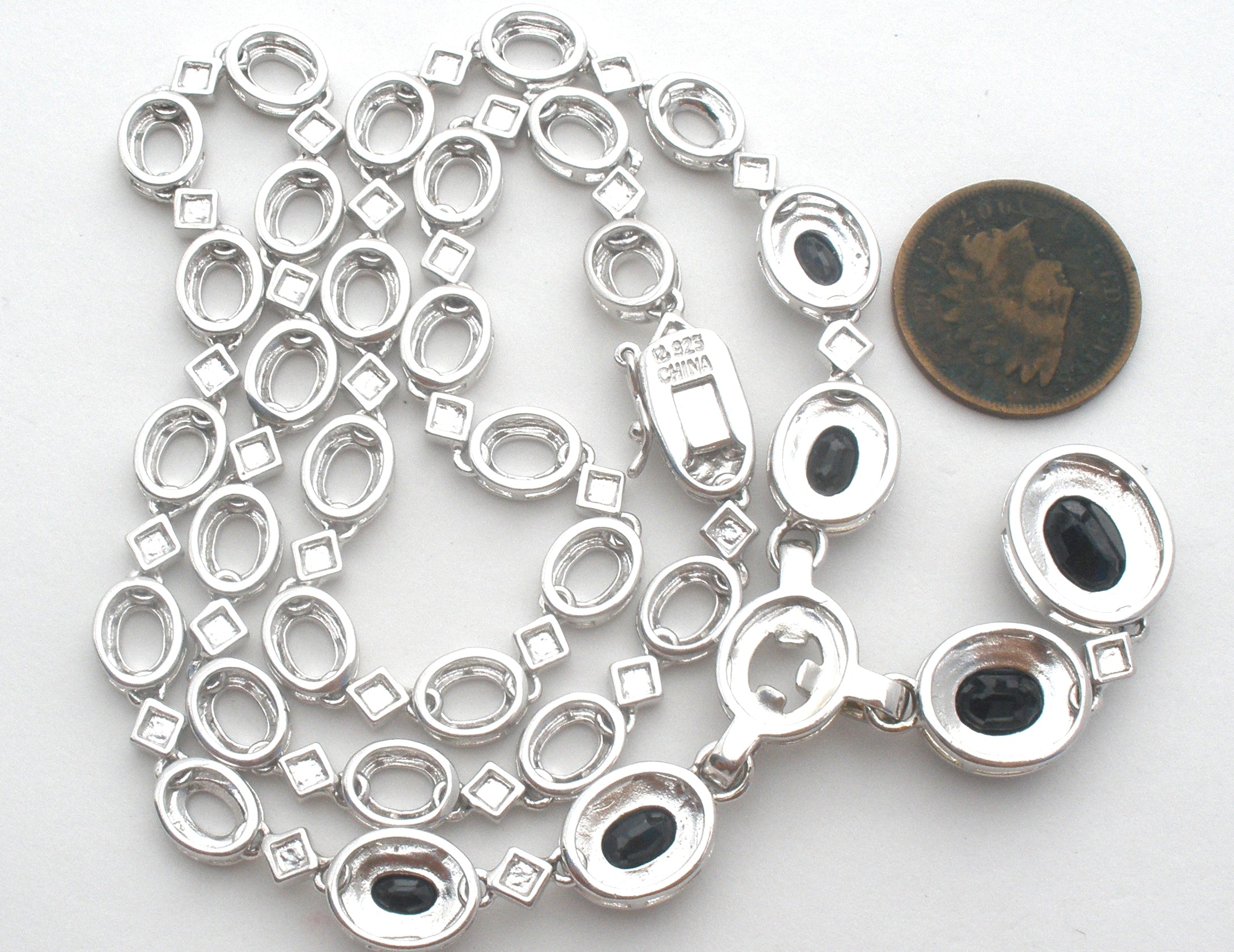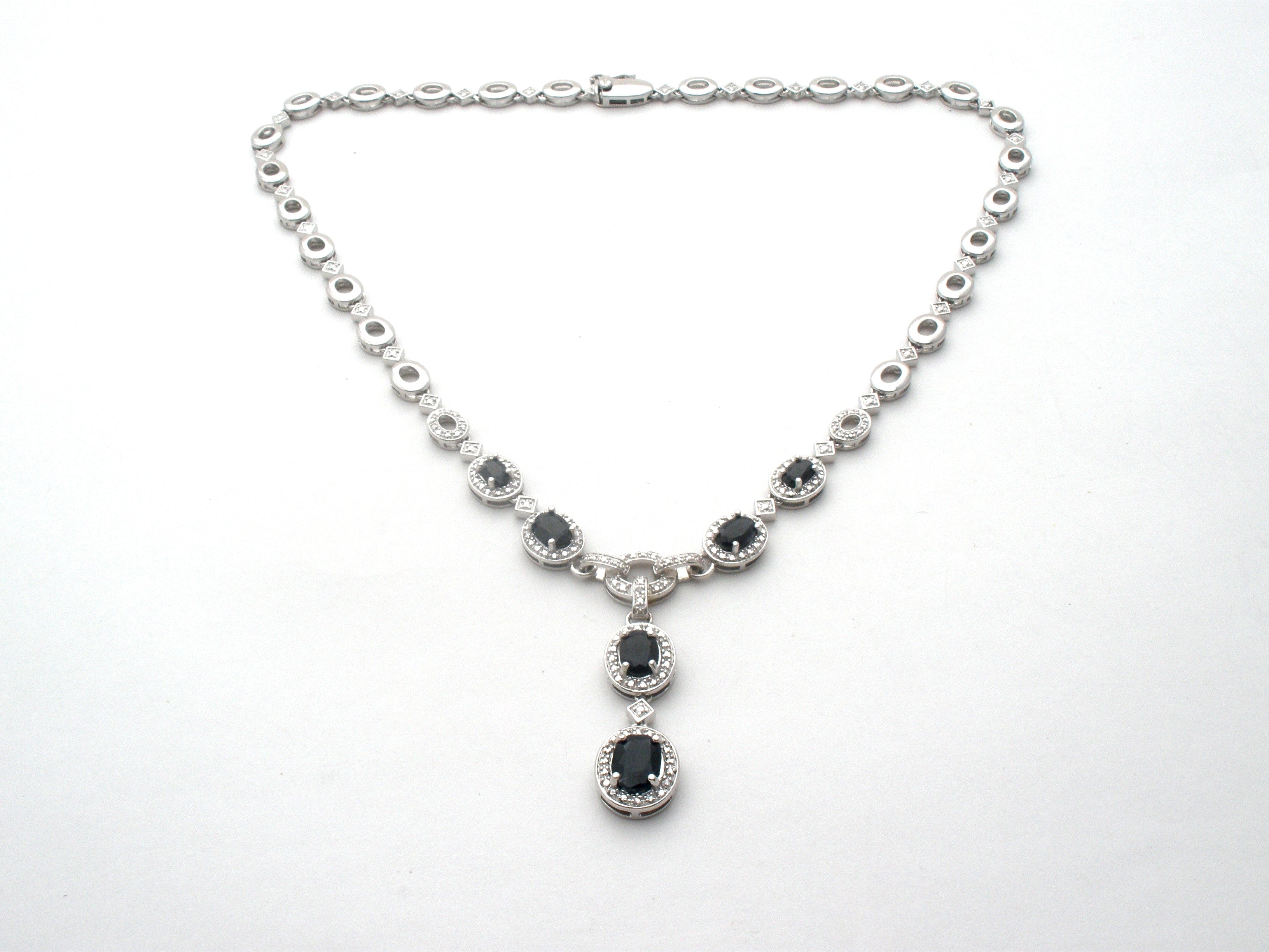 Designer Jewelry - This is a sterling silver lavalier style necklace with black onyx gemstones and one tiny diamond.