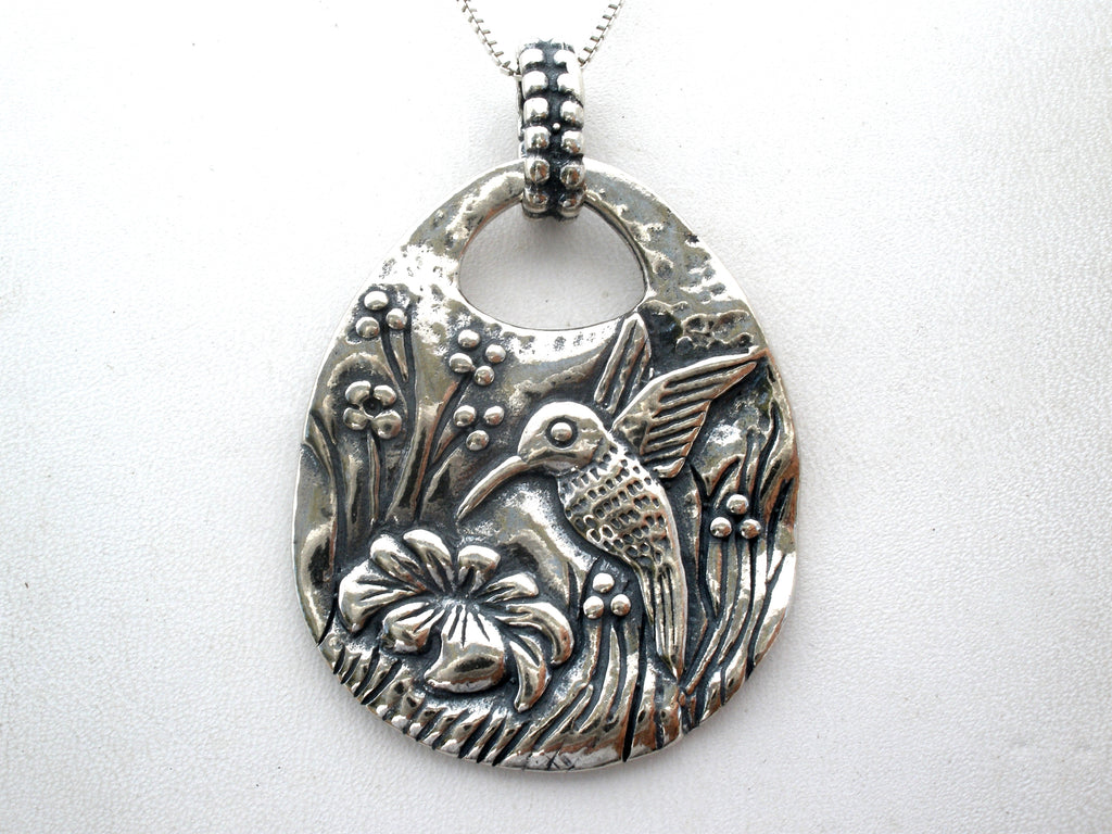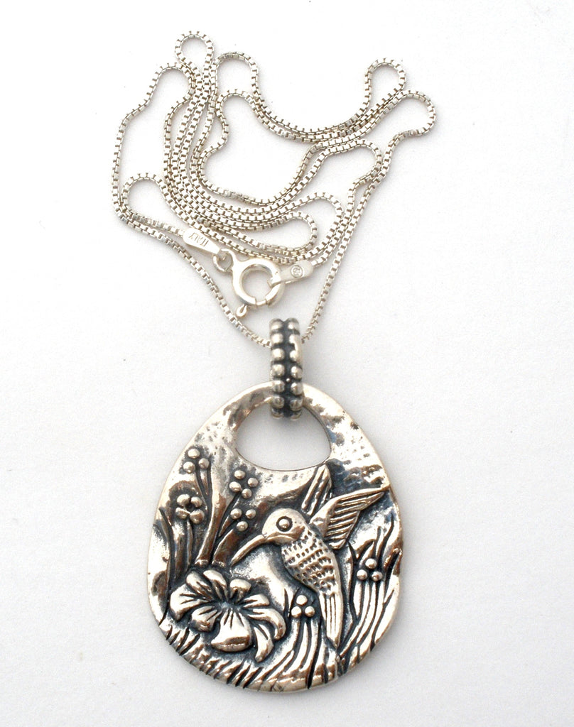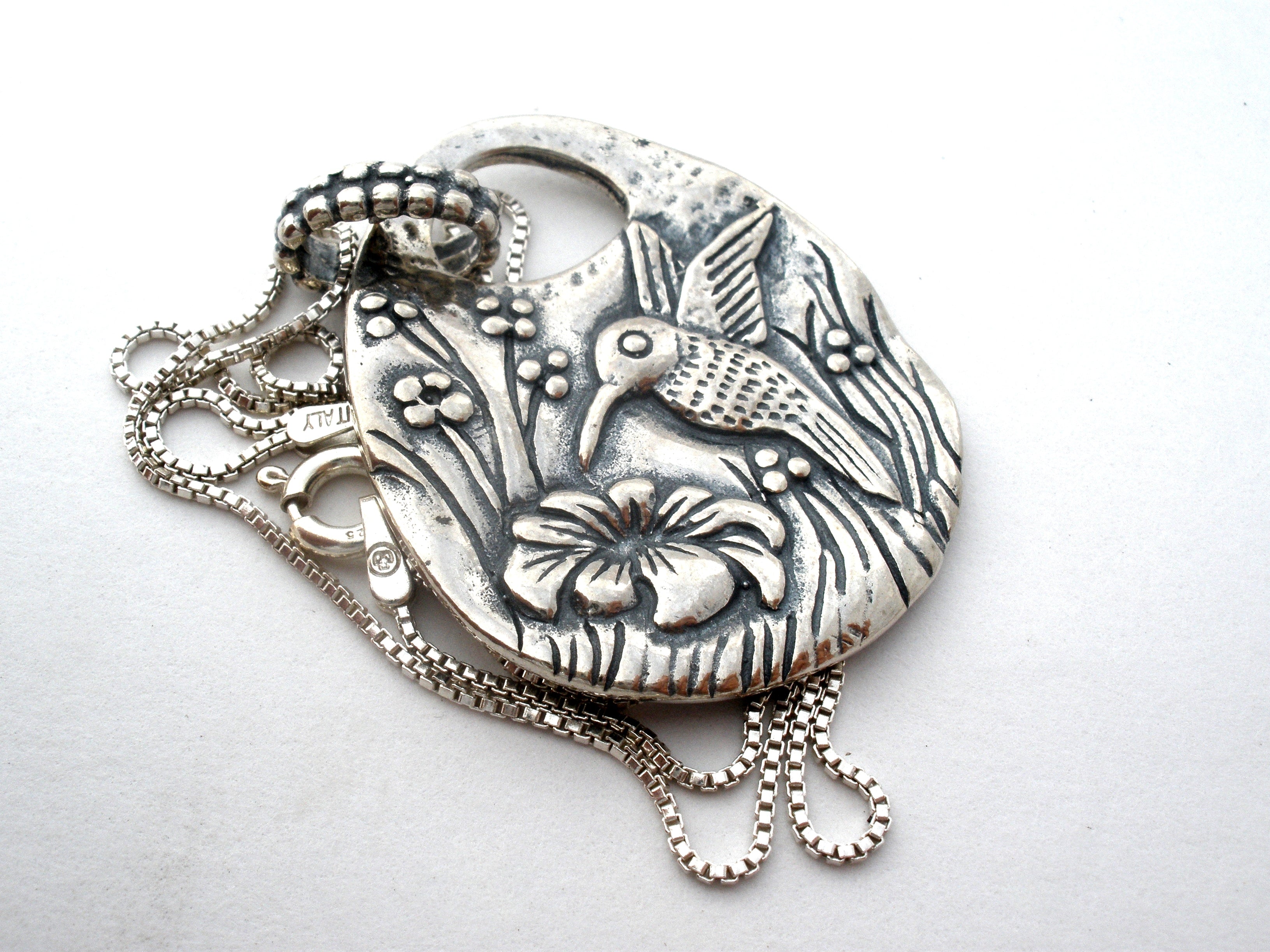 Vintage Jewelry - This is a sterling silver pendant necklace with a hummingbird design.