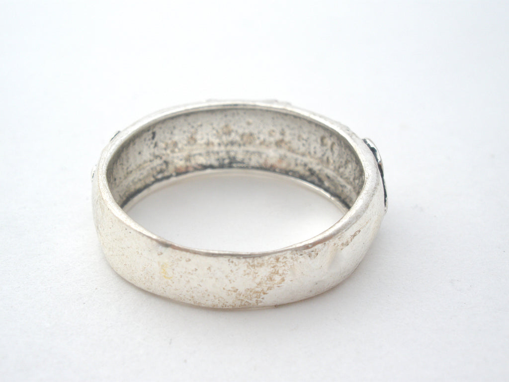 The ring is a size 7, measures .25" (7mm) wide, weighs 2.91 and is hallmarked 925.