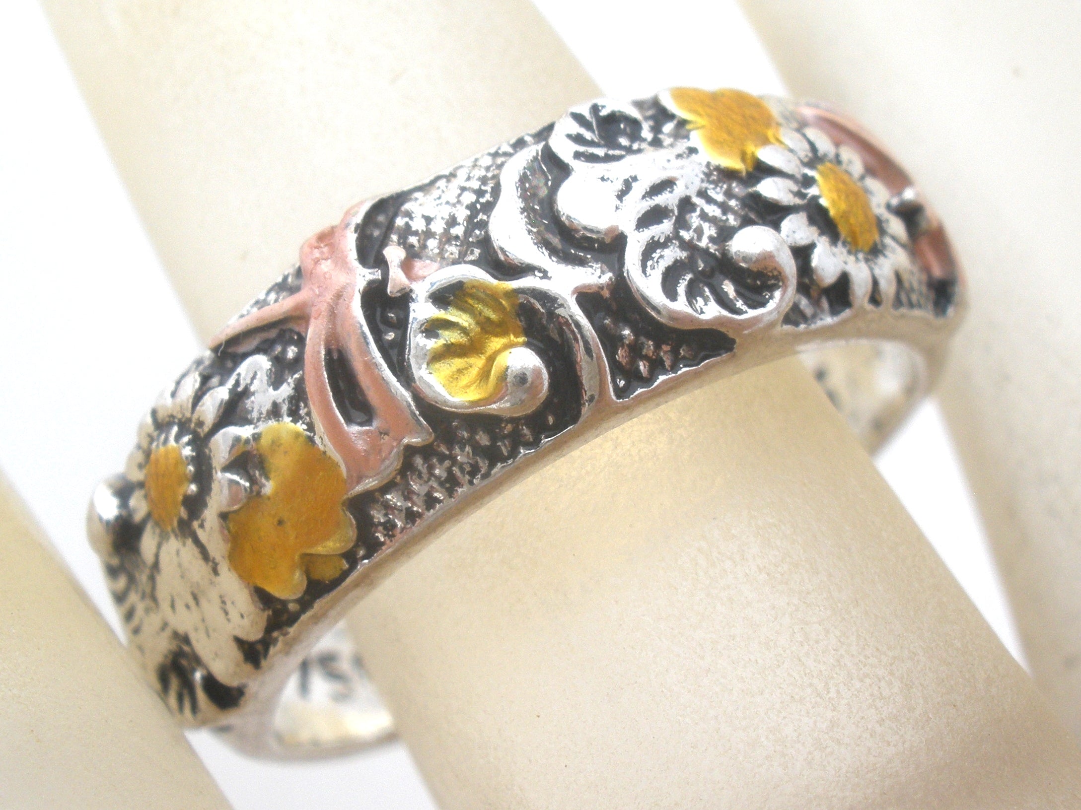 Fine Jewelry - This is a sterling silver band with an enamel floral and dragonfly design.