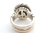 It is a size 6, face measures. 75" in diameter, weighs 19.5 grams, is hallmarked 925 18K with initials JA for John Atencio.