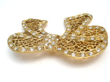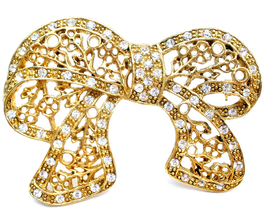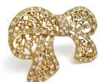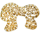 Designer Jewelry - This is a stylized bow brooch with an open work flower design and clear rhinestones.