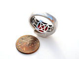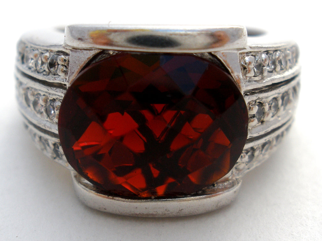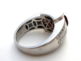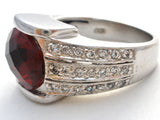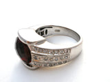 Vintage Statement Jewelry Rings - This is wide sterling silver ring with a large 12 mm by 10 mm briolet cut red cubic zirconia center and 3 rows of clear cz's on each side.