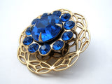 Sapphire Blue Rhinestone Brooch Pin Vintage