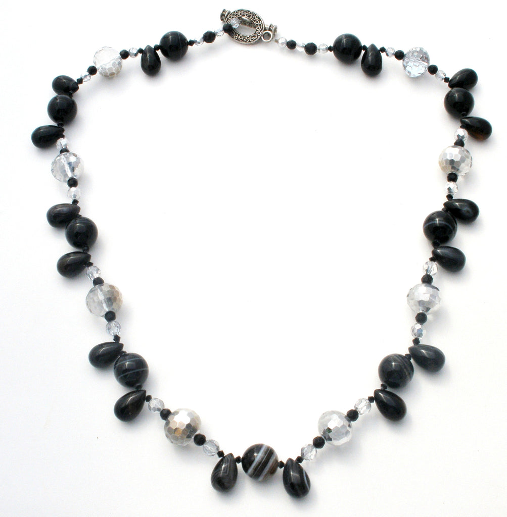 Statement Vintage Jewelry - This is a massive brown and black art glass bead necklace. It has large tear drop and round striped beads and clear faceted beads.